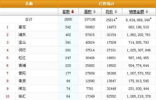 在区县成交方面,上周嘉定区位居第一。上周该区共成交542套,成交面积58983平米,成交均价14973元每平米。该区一直是刚需盘的聚集地,所以一直受到自住需求购房者的青睐。新城西尚海成交177套位居该区域成交量第一。新里崴廉公馆、合景叠翠峰上周销量也位居第二、三的位置。
