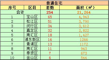 7.3上海住宅成交254套 成交面积21264平方米