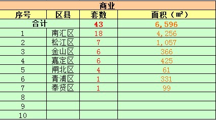 在商铺方面,今日共成交43套,成交面积6596平米。成交主要集中在南汇、松江和金山三大区域。