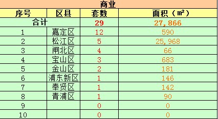 位居第三的是闵行区,与昨日成交状况相比,数据变动不大。成交套数42套,成交面积4223平米。