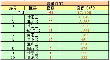 区县成交方面,徐汇区以80套的成交量居今日榜首,成交面积17195平方米。松江区、嘉定区并列第二,今日成交均为20套。浦东新区位列第三,成交17套,成交面积1394平方米。